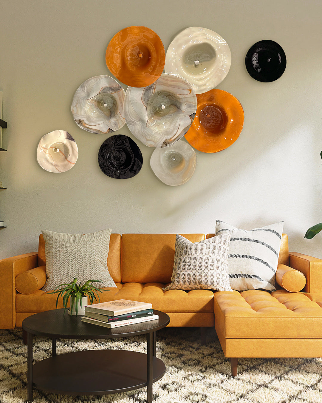 Con nuestro set de 9 platones de vidrio soplado podrás darle personalidad a tus espacios interiores gracias a sus distintas texturas y acabados originales, con sus diferentes combinaciones de color será posible crear ambientes especiales y visualmente atractivos que destacarán la belleza de su entorno en cualquier habitación, con la variación correcta destacarán la identidad de tu hogar.