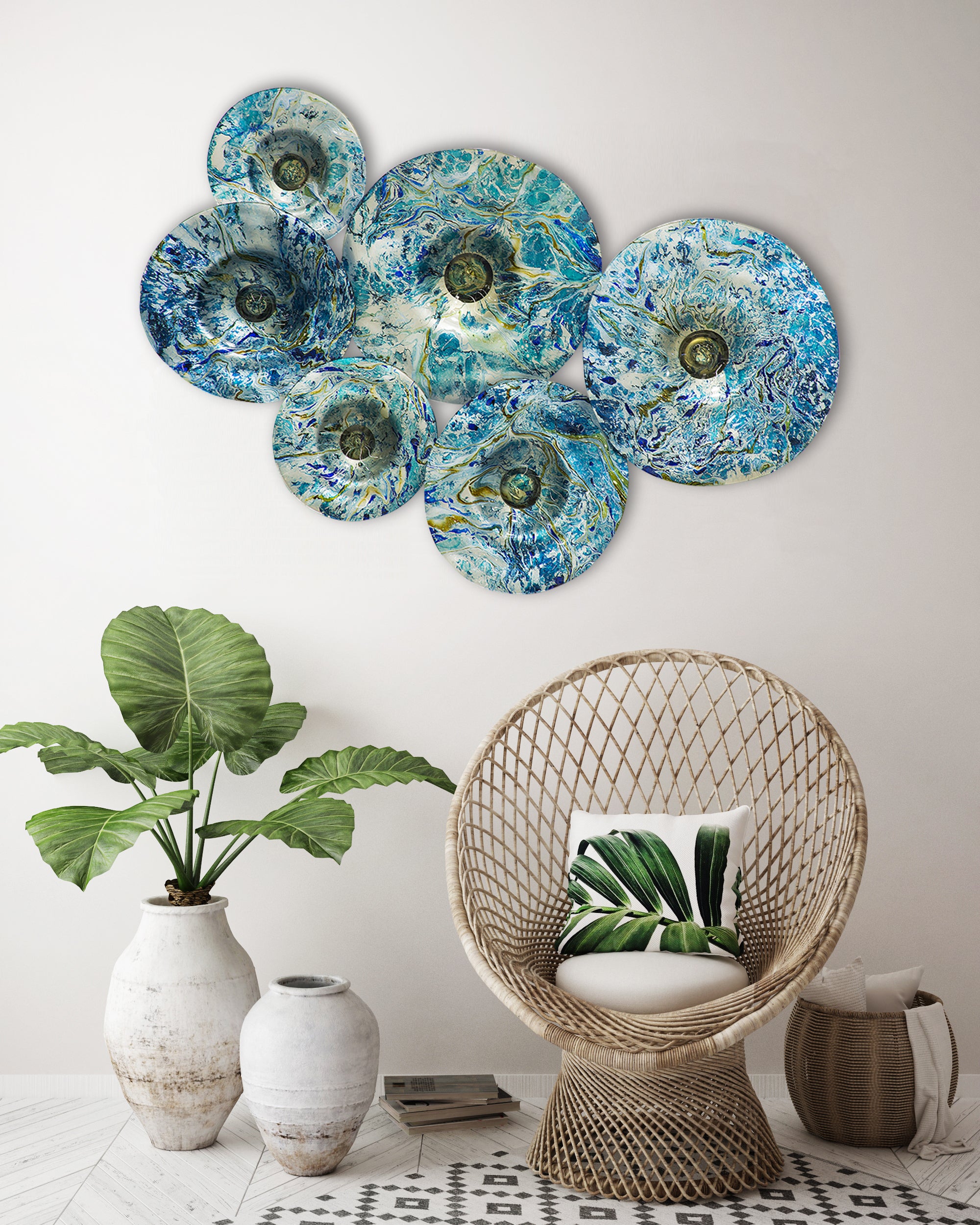 Con nuestro set de 6 platones de vidrio soplado podrás darle personalidad a tus espacios interiores gracias a sus distintas texturas y acabados originales, con sus diferentes combinaciones de color será posible crear ambientes especiales y visualmente atractivos que destacarán la belleza de su entorno en cualquier habitación, con la variación correcta destacarán la identidad de tu hogar.